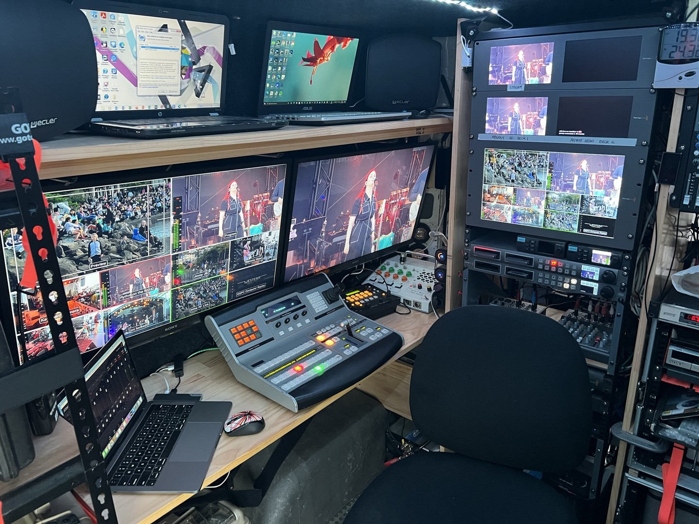 I am fully equipped to offer a multi camera coverage of your event from my broadcast vehicle. Full frame graphics and graphic overlay's, video inserts, powerpoint, music replay - its all possible!! Portable options are also available which can be set up in the venue. Single camera or 4 - 5 - 6 cameras ..... how many do you want? operated, locked off - the choice is yours. We tailor the coverage to suit, meet and exceed your expectations.