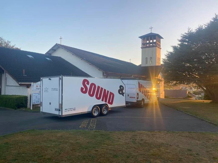 I offer a full AV SOLUTION. Some venues have nothing or want me to compliment what they do have. PA & Audio support plus large screen LED TV's. There is also the option of a screen and projector if that is suited more to the venue. Video and Audio is replayed from the van and can also be split between two adjacent venues if required, IE the service from a church can be directly fed into an adjacent hall.